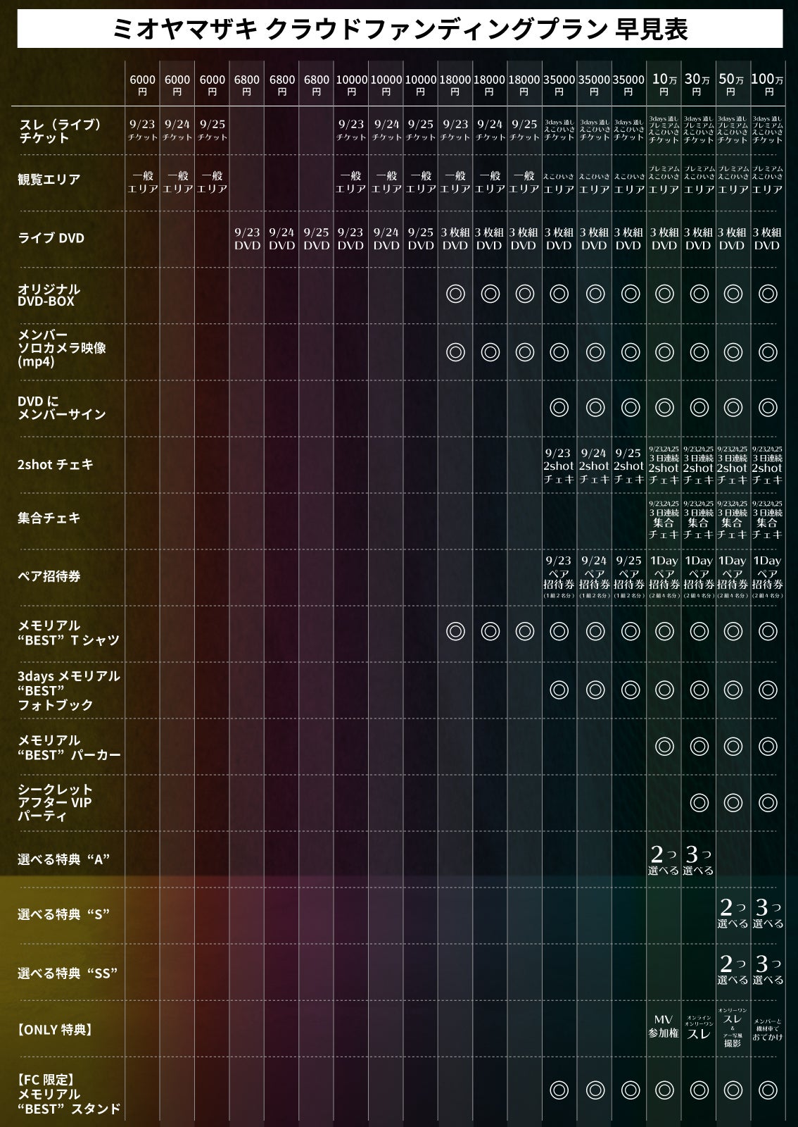 【1】ライブDVD:プランごとに公演日付が異なります。必ずご希望の公演日をご確認の上、ご支援ください。(※ゲスト出演部分のDVD収録は未定です。)