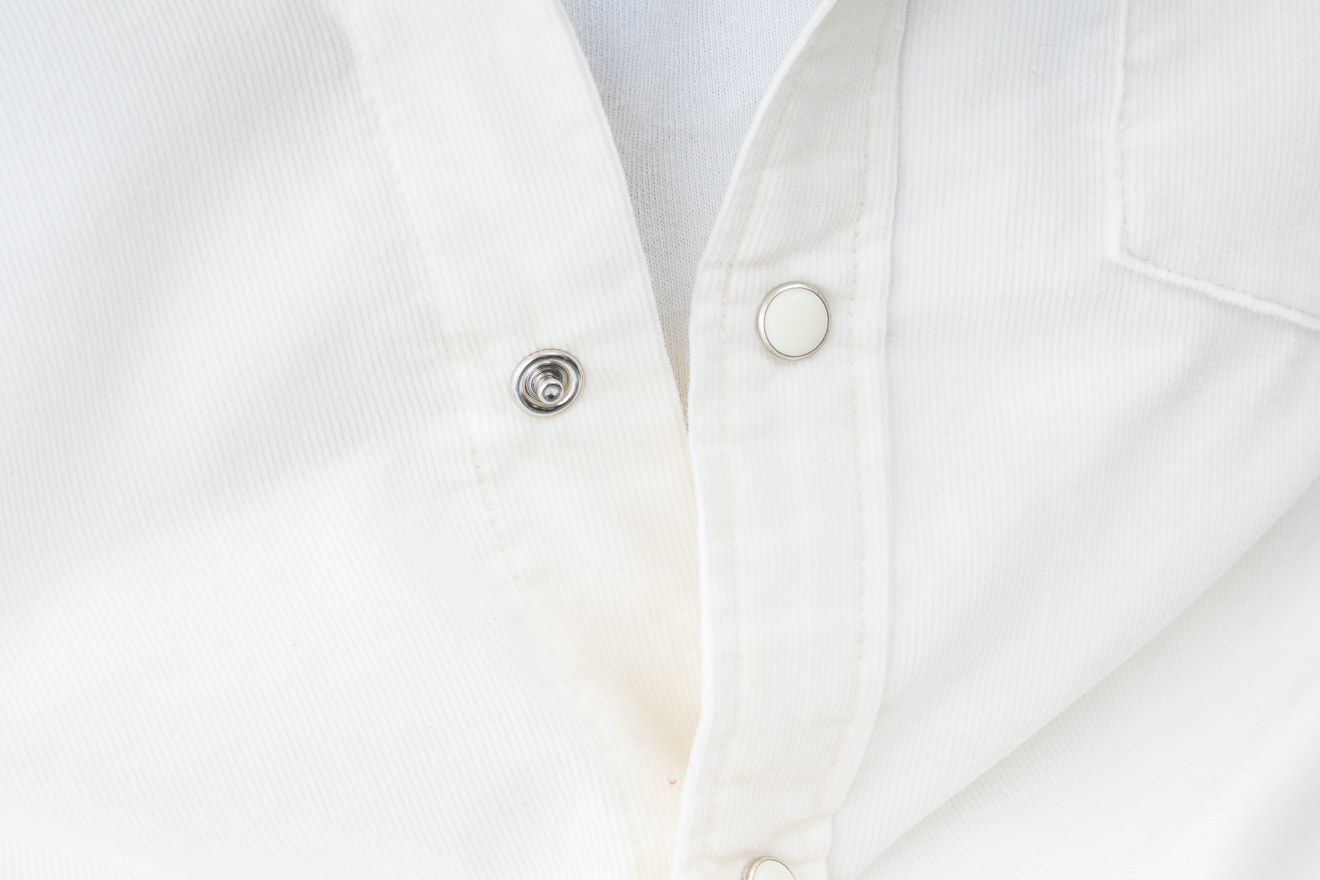 握力に自信がない方でも着脱しやすいよう、スナップ式のボタンを採用しました。金属型にすることで、上品でカジュアルなイメージになるよう仕上げています。