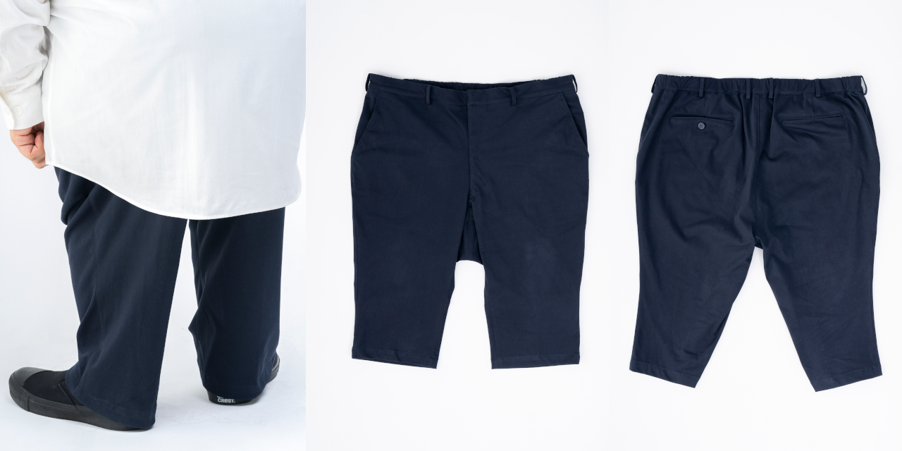 S・M・Lといった広く流通している以外のサイズ感を再現。いつもは市販のズボンを切ったり、折ったりして履いているという方も、スッキリ着こなせる丈になっています。