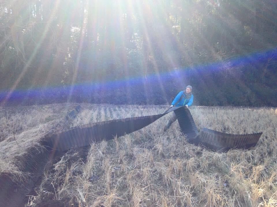 冬の間は田んぼの整備。囲いをはがして補修する準備です。