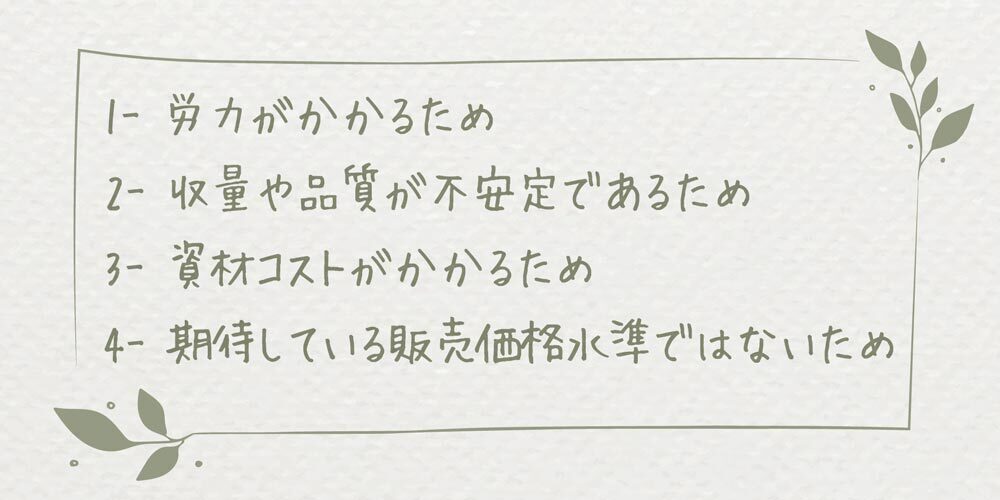 「いつかオーガニックを本業にしたいが、利益がなくて今はそれが叶わず、アルバイトと兼業している」