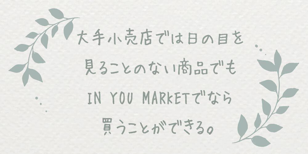 そして、5年程前からは、読者様や消費者様からの要望に応える形でIN YOU MARKETをスタート。