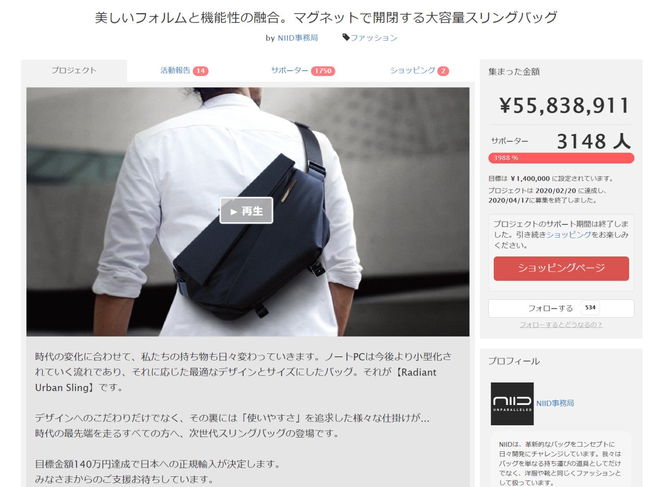 【Radiant Urban Sling】は、国内クラウドファンディングでも人気で話題沸騰のバッグブランドです。