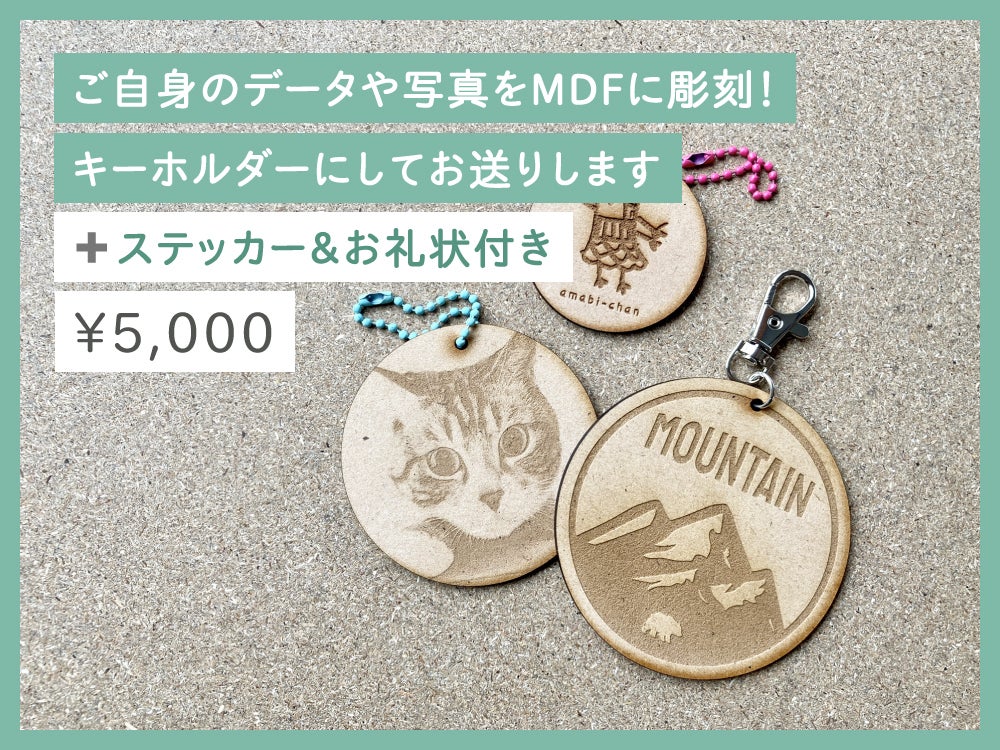 ●ご自身のデータや写真をMDFに彫刻!キーホルダーにしてお送りします+ステッカー&お礼状付き