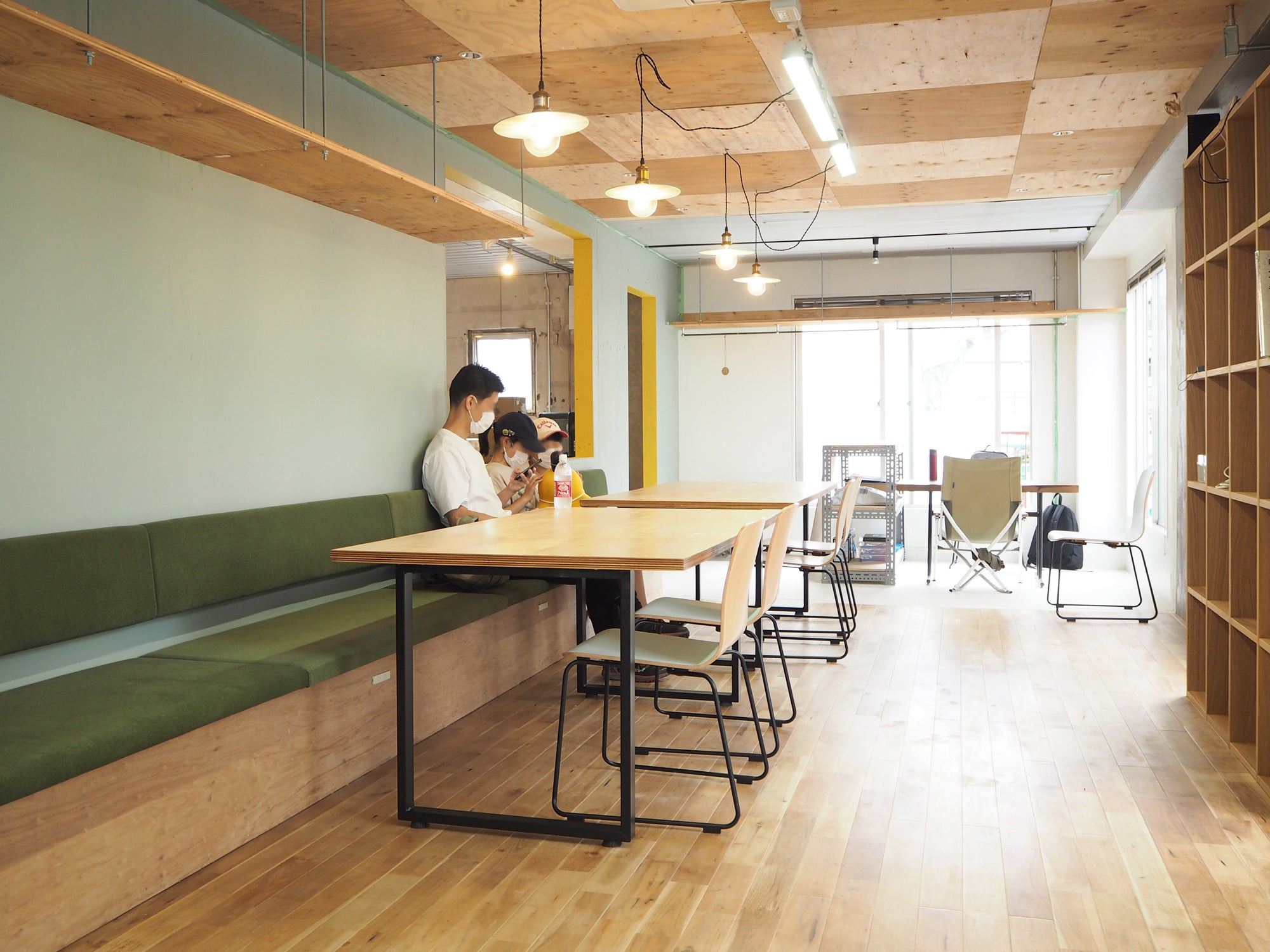 WiFi・電源を備え、仕事や読書、勉強など、思い思いの過ごし方をしていただける場所です。FABスペースとは壁で仕切られていますが、その壁には大きな開口部があります。お昼過ぎまでの時間は比較的静かですが、放課後タイムや休日はガヤガヤするでしょう。そのガヤガヤこそ、コーサクが生まれるチャンス。一風変わったワークスペースとして、いろんな利用のしかたを生み出してほしいです。