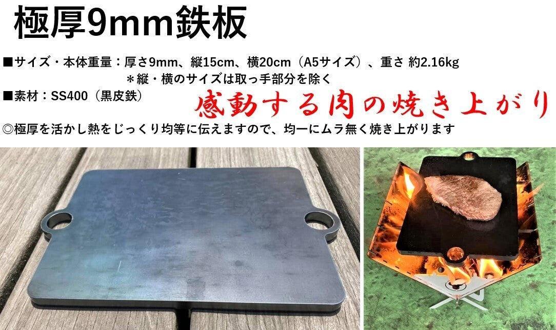セット販売している極厚9mm鉄板やハーフグリル3.2mm鉄板は楽しみの幅を拡げてくれるのでおすすめです。