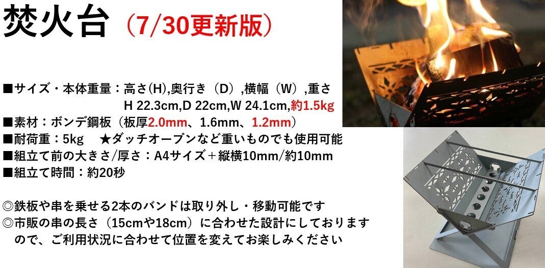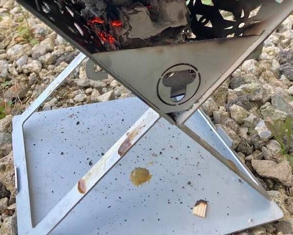 灰が風で飛んだ際環境へのダメージを最小限に抑えるため市販の焚火台シートと併用いただくことを奨励します。