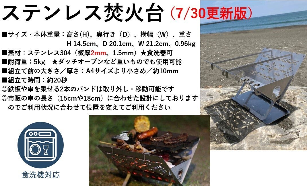 ステンレス焚火台は錆に強いため、食洗器でも洗えます。