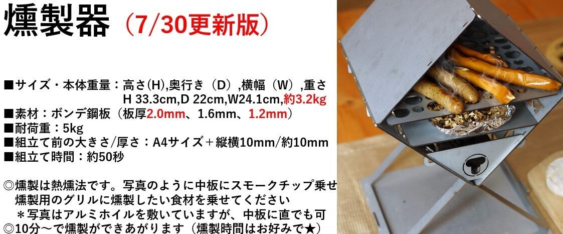 ピザ窯・燻製器は50秒以内の組立て。焚火台は20秒以内の組立てが可能です。