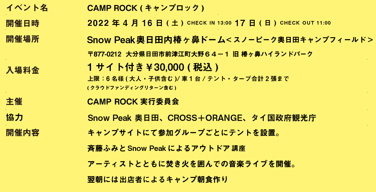 サポートして頂く皆様と「CAMP ROCK」を是非一緒に