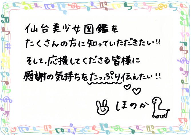 今後も仙台美少女図鑑の活動を通じ、「夢」の実現化に向けた道をファンの皆様と共に歩んで参りたいと思いますので、ご支援の程よろしくお願い申し上げます。