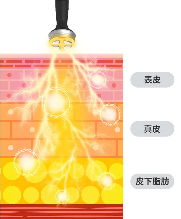 ラジオ波のエネルギーが届き、温めます。2つのハンドピースで同時に行うことで、短時間で効果的に感じることができます。