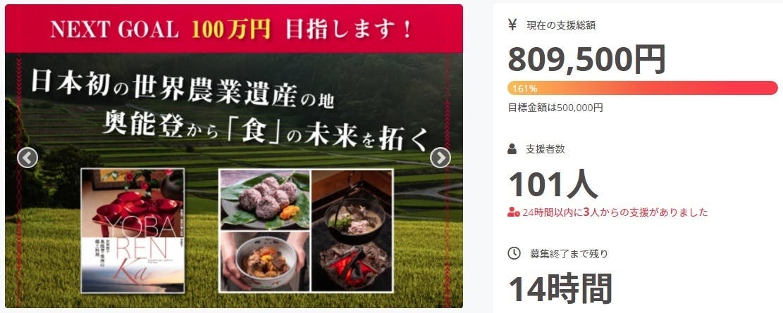 そして、今回私たちが挑戦するのは、奥能登の食文化を掘り起こす料理本の制作です。古き良き日本の食文化が今も残る奥能登珠洲の「郷土料理」を集めた本を出版して、この本をきっかけに食のあり方を変えていきたいと思っています!