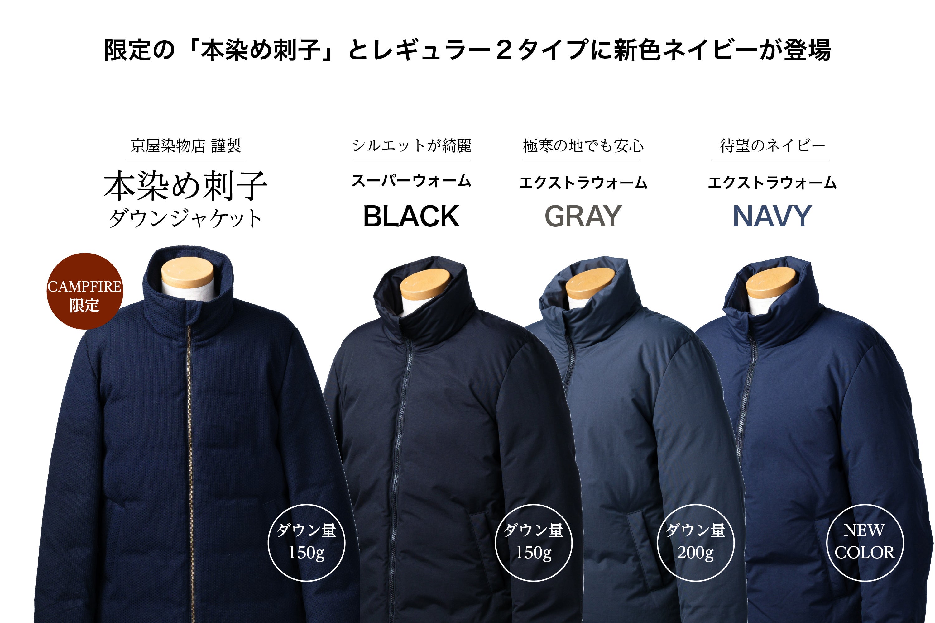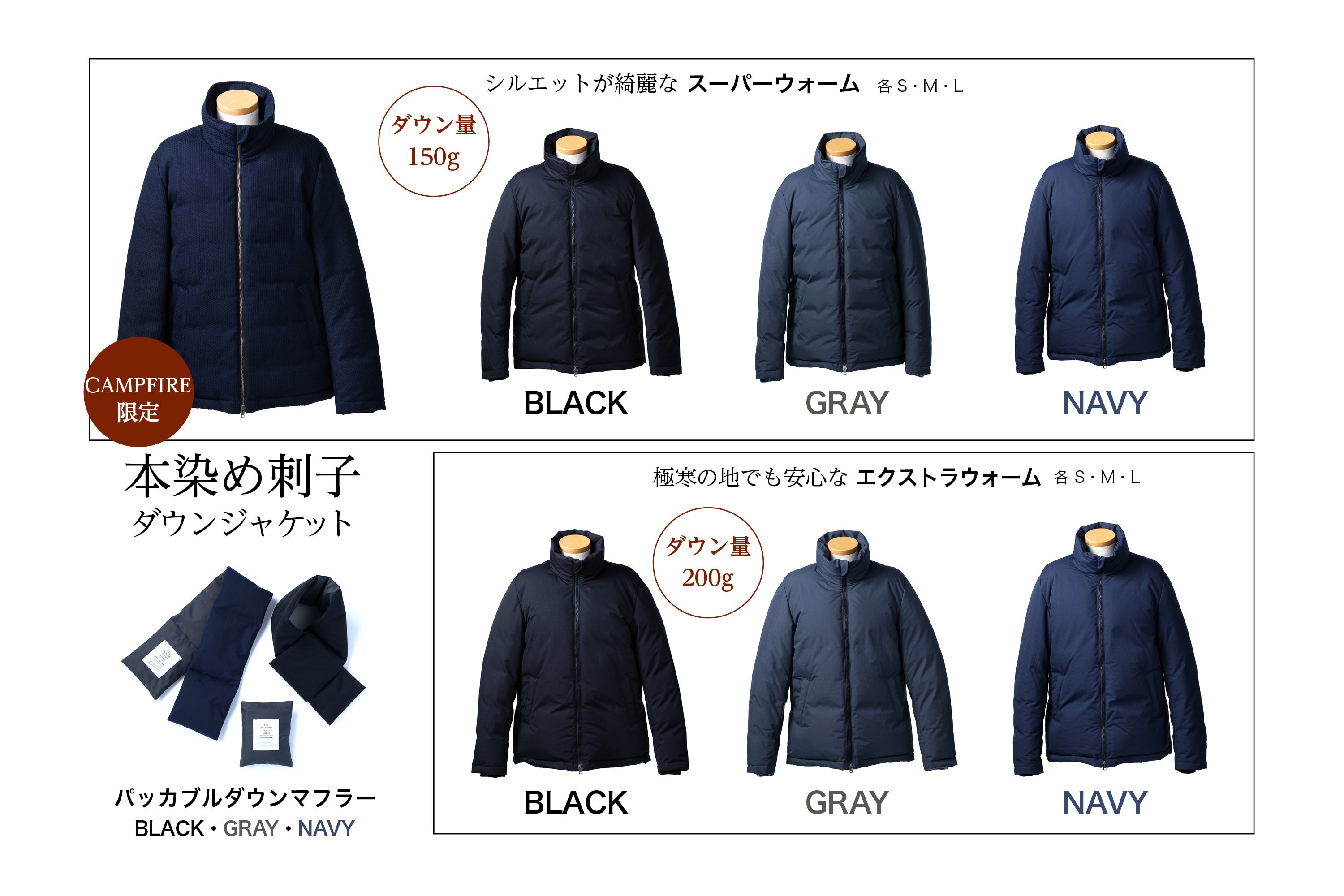 ※「本染め刺子ジャケット」は、スーパーウォームと同じ150gのダウンを使用しています。