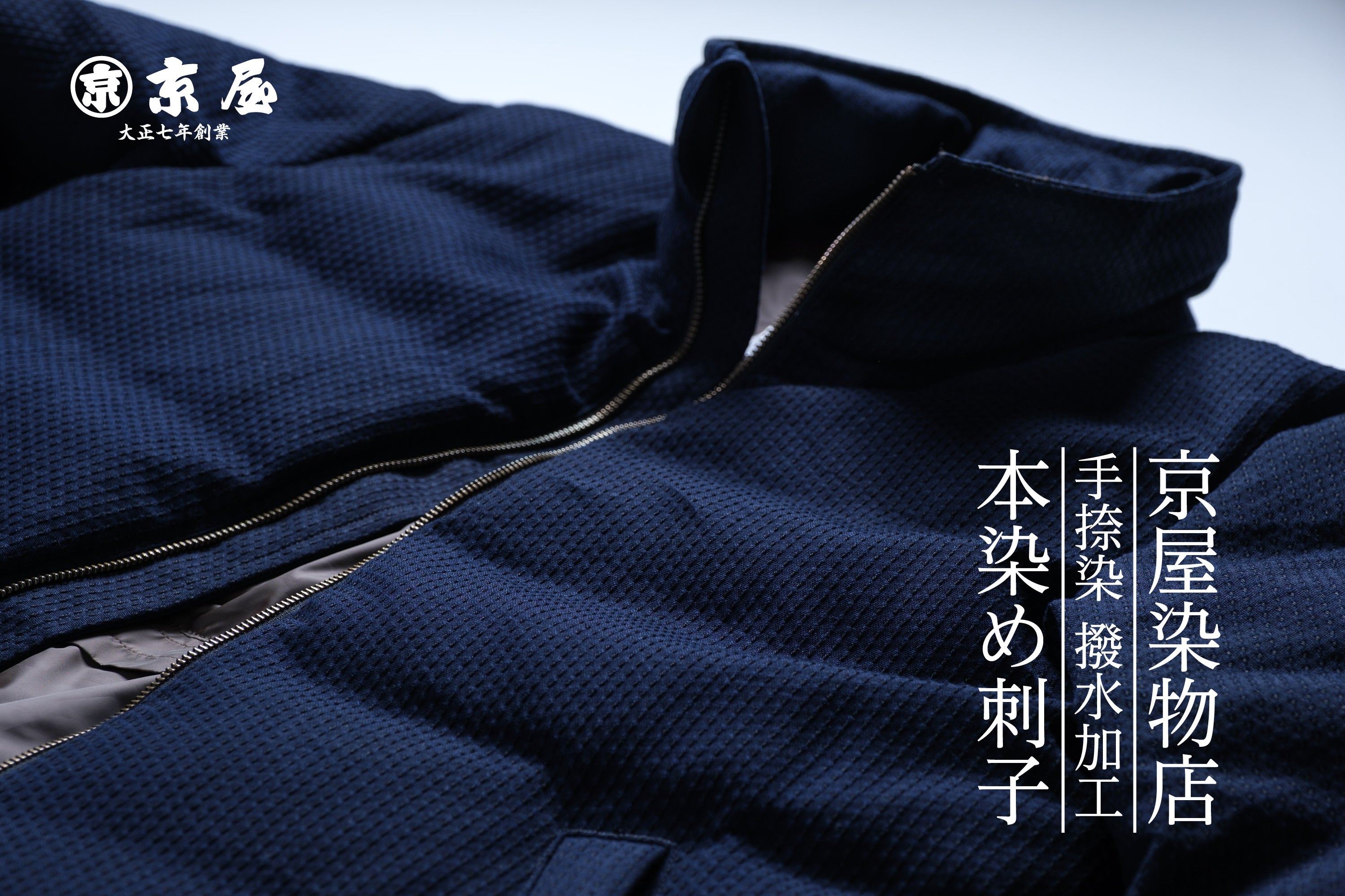 『The Authentic Down Jacket』をリリースした際、岩手県一関市で100年続く染物屋「京屋染物店」の蜂谷社長から「このダウンをうちで染めた刺子生地でつくりたい」とのお話をいただきました。