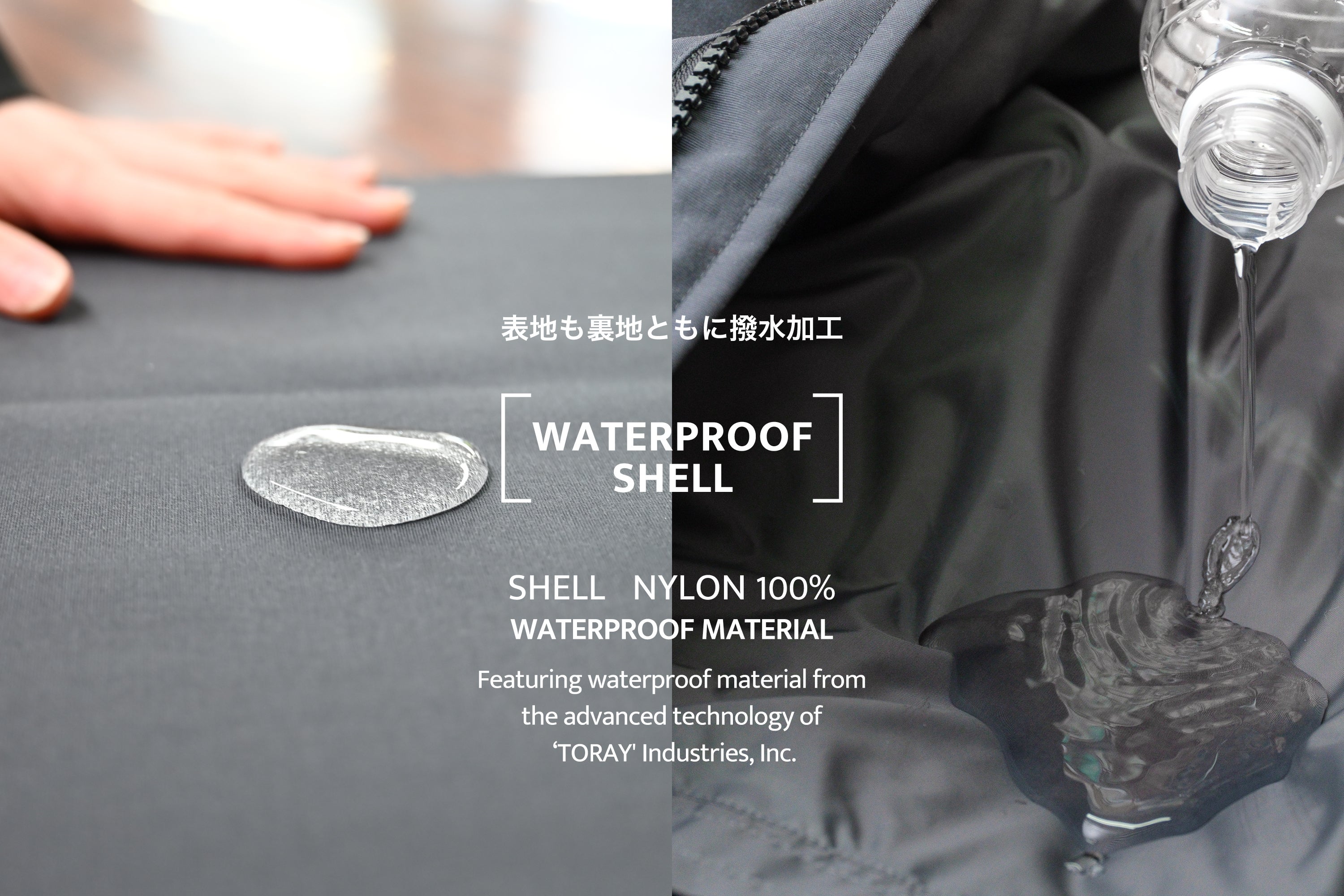 ダウンジャケット同様に撥水加工された生地ですので、雨や汗にも強く、臭いもつきにくい素材です。