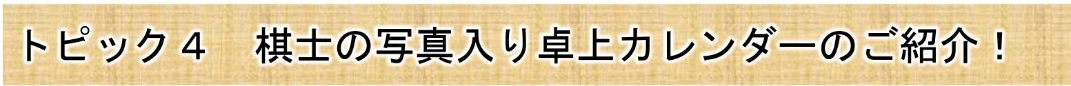 この記念品は、関西所属の棋士・女流棋士の方々の写真を月間カレンダーとして製作したものです(一部は関西将棋会館の移転先である高槻市内で撮影)。