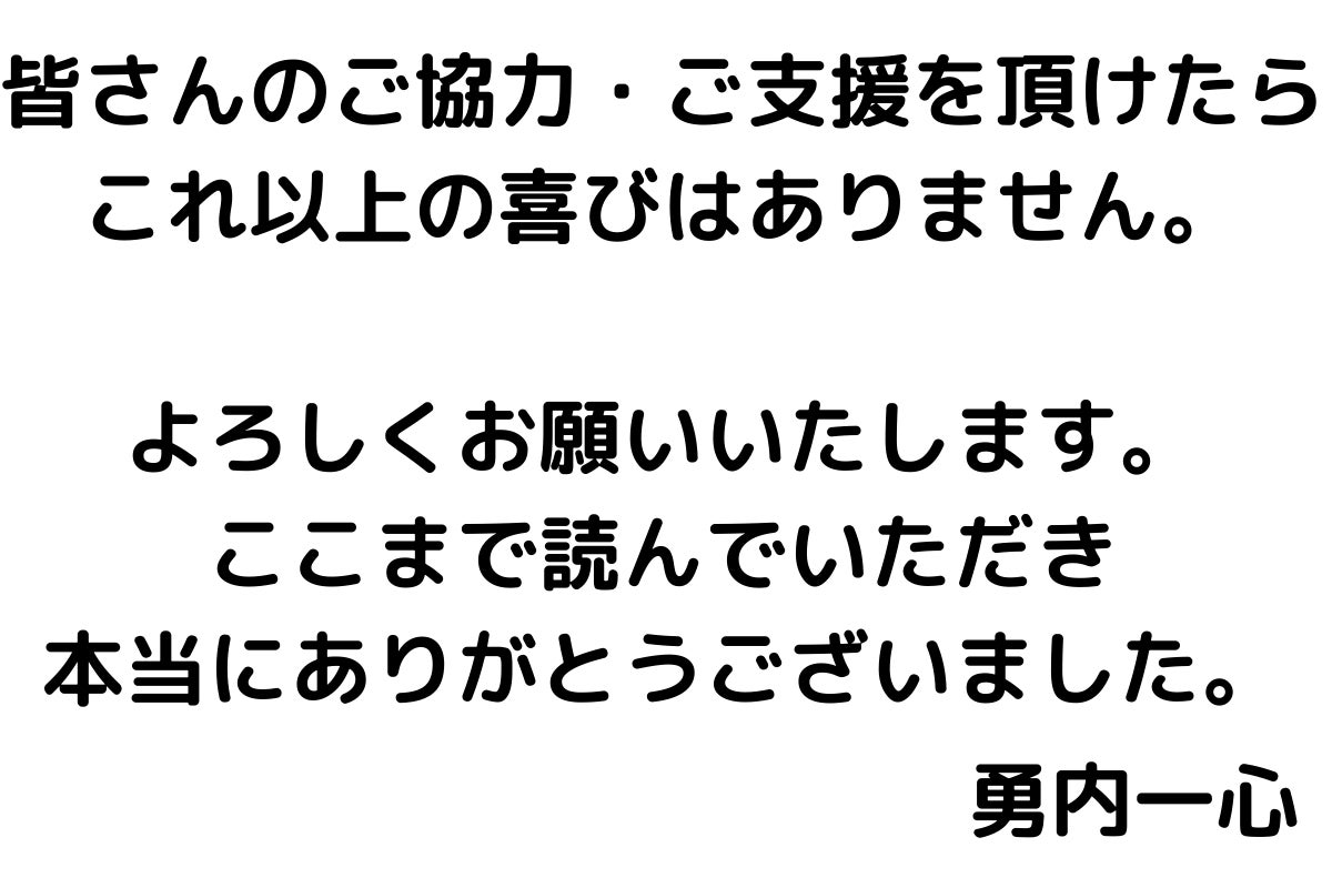 2021/07/20 15:24ご支援、拡散のご協力ありがとうございます!NETORSの勇内です。さて、当プロジェクトですが竹ノ内大輝様より応援メッセージをいただきましたので掲載させていただきます。竹ノ内大輝様は当プロジェクトの開始当初から応援していただいた方の一人です。本当にありがとうございます!これからもよろしくお願いいたします。 もっと見る