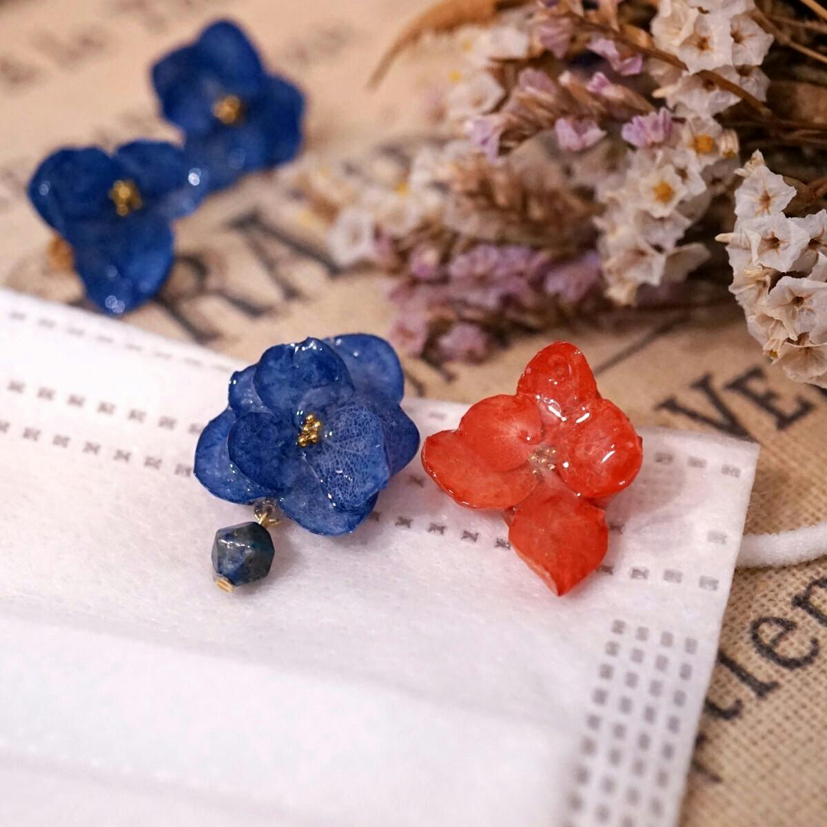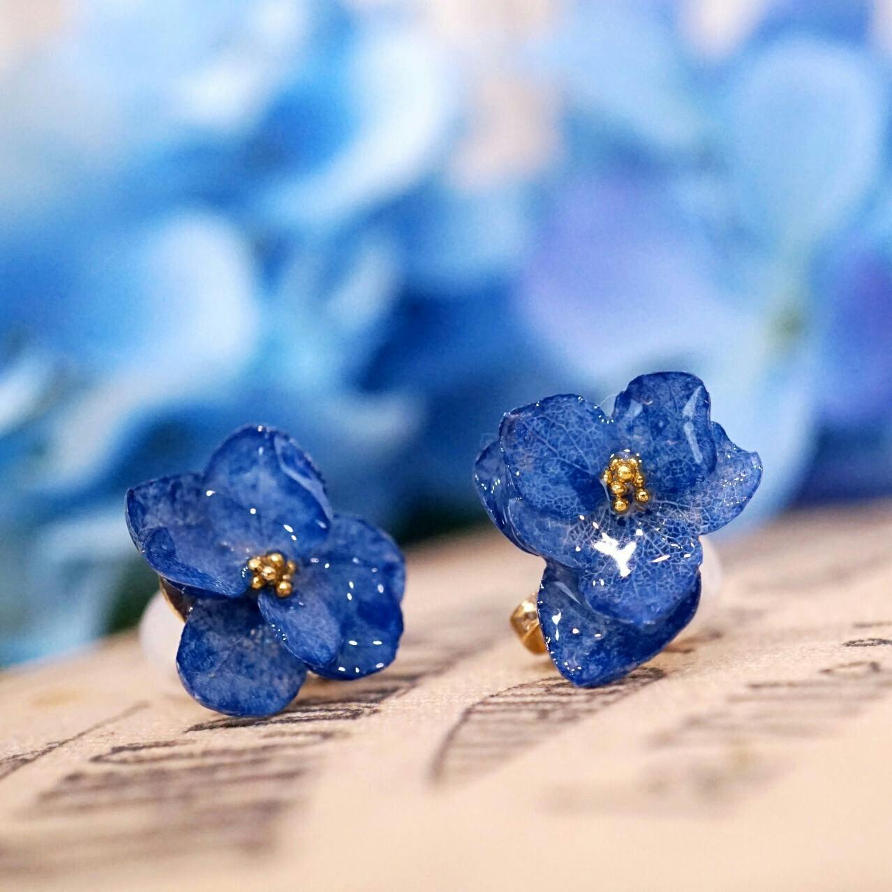 そんなラピスラズリで本物の紫陽花を染め、シンプルなイヤリングを作りました♪