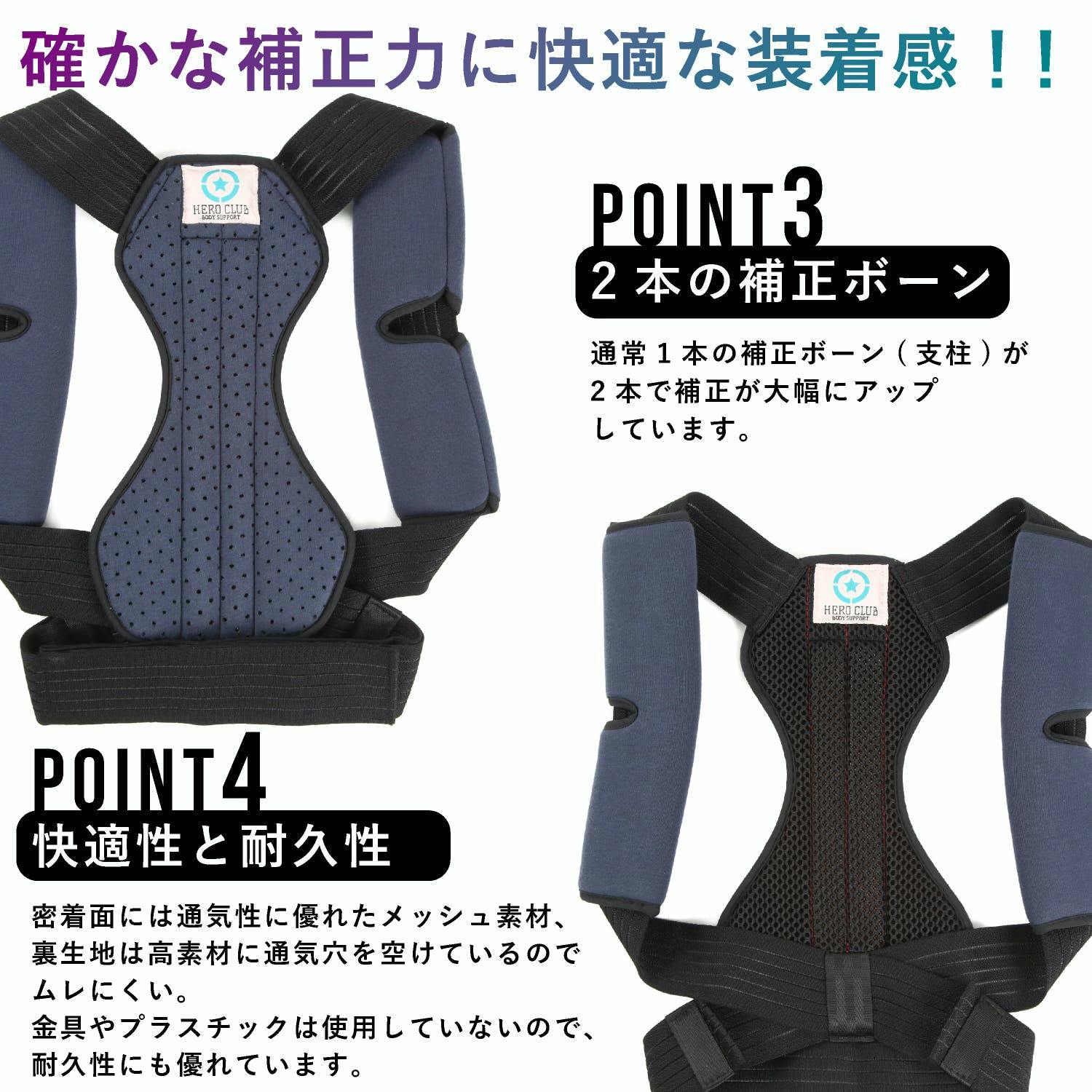肩や脇への負担がないロングクッションパッド、Wの補正ボーン(支柱)、スパンデックス(伸縮性、耐久性に優れたポリウレタン弾性繊維)を使用した、高弾力のクロスゴムベルトにて体をしっかりサポート。他商品にはない圧倒的な装着感、商品力を実現して、つけ心地、補正力が他商品とはまるで違うとの評価、レビューをいただいております。