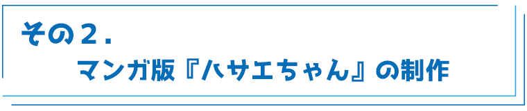 ①に加えて、ハサエちゃん漫画(ストーリー編)(6話分)を空飛ぶクジラ先生に依頼し制作します。