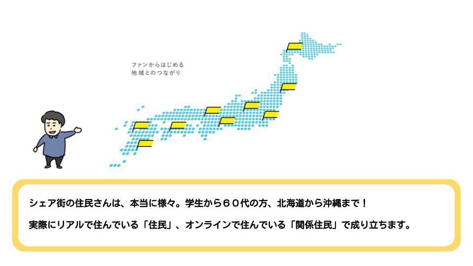 ちなみに、「シェア街」という名前は、一つの家をシェアするのでシェアハウスと呼ばれているように、シェア街はまちに点在している複数のリアルとオンラインのきょてんを住民でシェアしていることから名付けました。