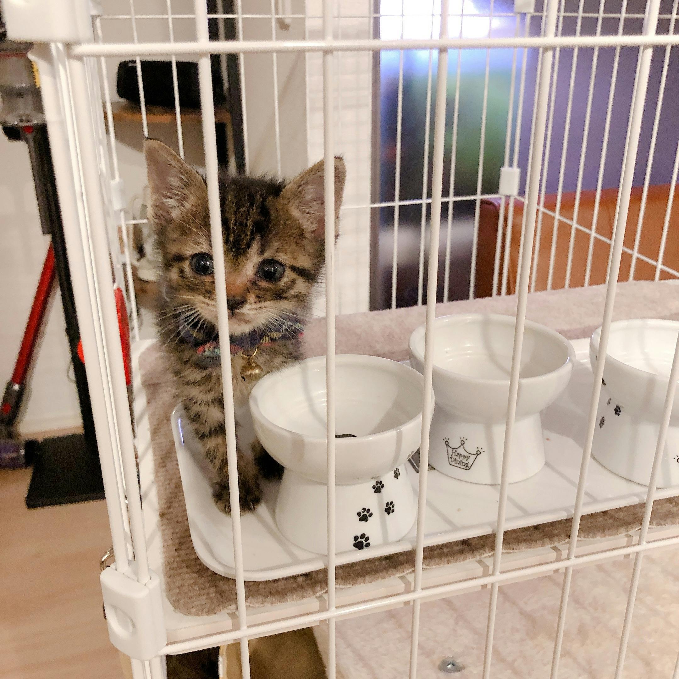 ゲージも準備することにしました。子猫用のトイレも置き、安心している様子です。