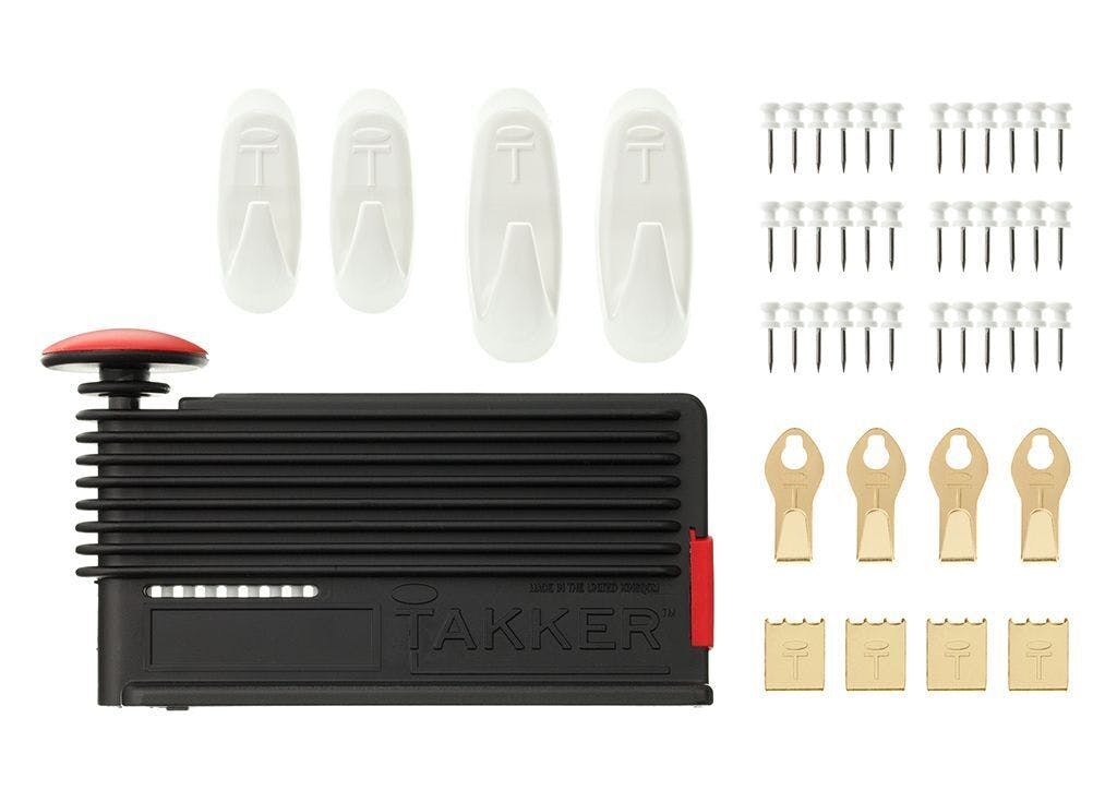 TAKKERは本体とTAK(ピン)、ピクチャーフック、キャンバスフック、マルチフック(スモール、ラージ)で構成されています。