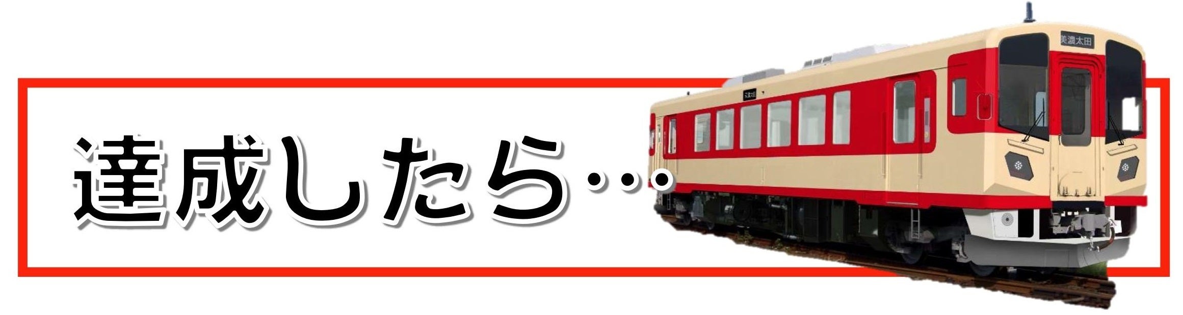 達成した際には美濃太田駅出発時には閉塞機や通漂を使い疑似的にはなるけれど出発合図を駅員が出し、駅には立ち売りの駅弁屋さん!車内でワゴンを使った車販!アテンダントによる沿線の案内など、そんなイベントをやりたいです!