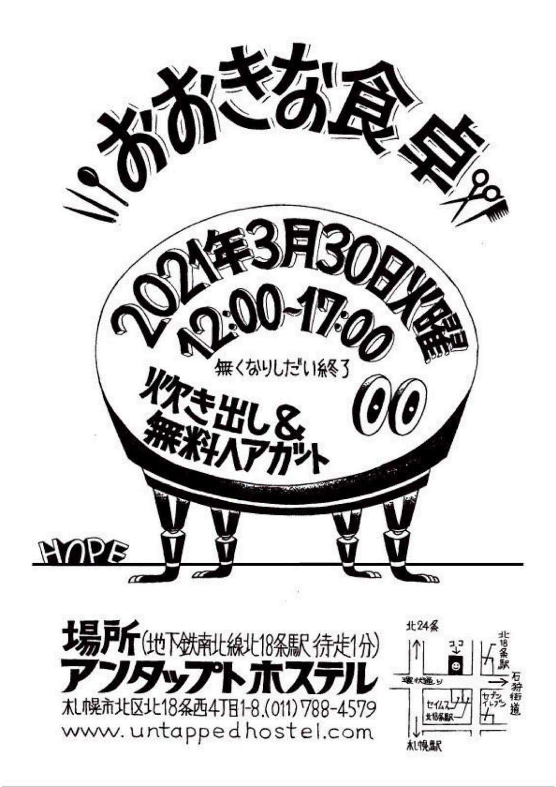 UNTAPPED HOSTELのある北18条というエリアは、北海道大学を中心とした学生街です。学生の現状は、授業はほぼオンライン、サークル活動や部活は制限され、バイトもできなくなり、と学生時代にこそ行使できる自由が奪われている状況が続いています。道外からやってきた新入生は、友人をつくる機会さえ奪われているような状況です。場所柄、学生とコミュニケーションを取る機会も多く、メンタルの不調を訴えている学生についての話も度々耳にしました。(これらの状況を受けて、上記の学生による食事会を開催してきました。)