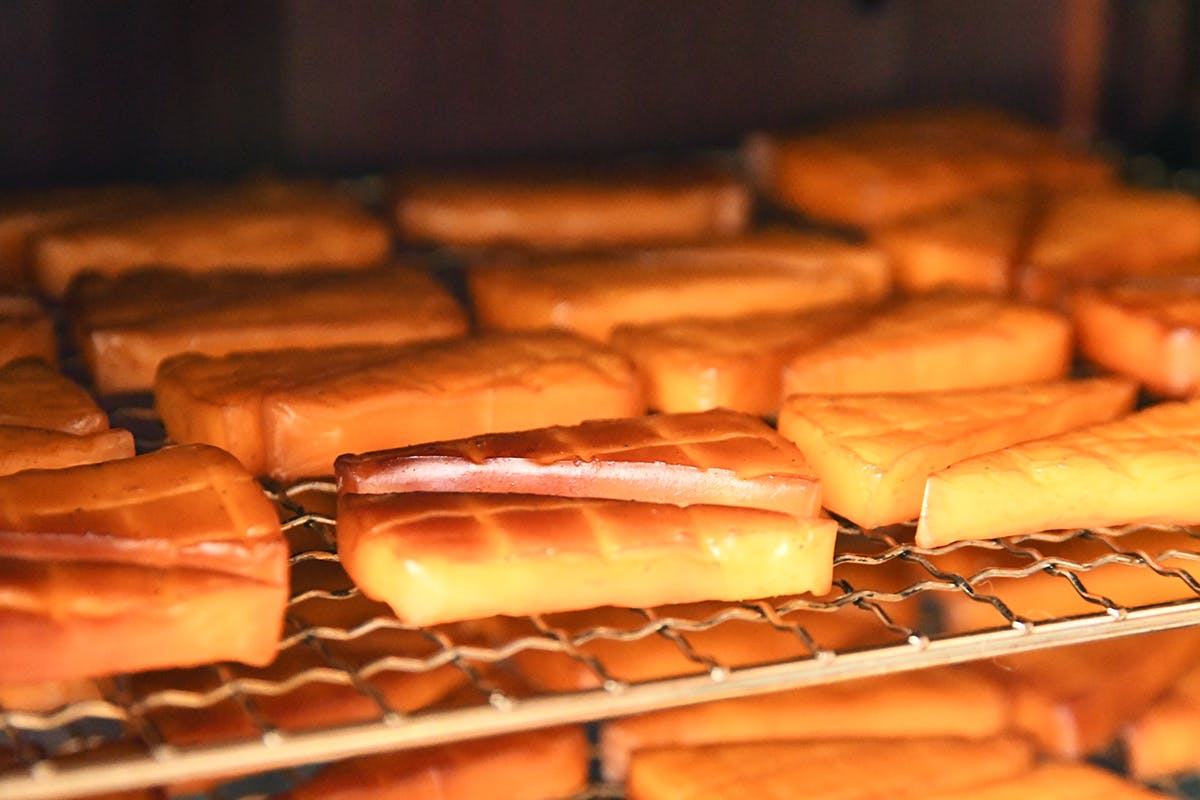 燻製と聞くと"煙っぽい味がする…"というイメージを持っている方もいるのではないでしょうか。美味煙独自の燻製窯は煙を程良く逃す構造となっているので、”あの嫌な臭み”はありません。燻煙の旨味成分と豊かな香りだけを残した、まさに”良いとこ取り”をした燻製チーズです。