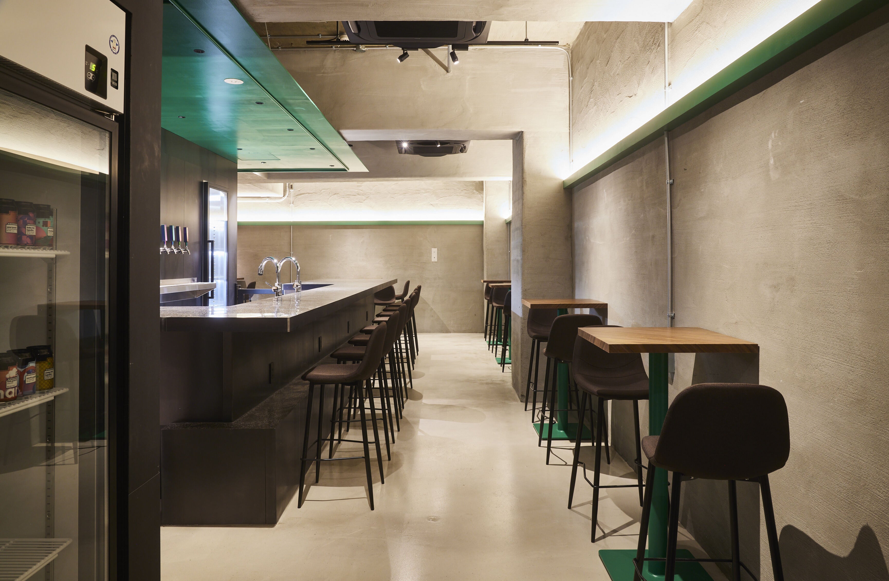イノベーションを起こす象徴的なエレメントの配置で、上質でありながらも気兼ねないコミュニケーションを提供していく。この空間では革新的なビールと色彩豊かなパッケージ、 人々の熱量が浮かび上がる。 創造性を高めるアートのようなプリミティブな空間は、 訪れた人々をカーボンブリュースの世界を楽しむひとときに誘い込む】