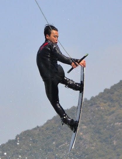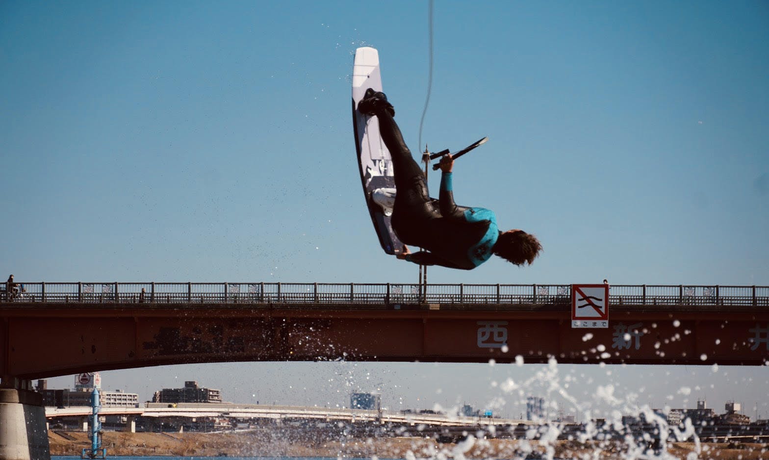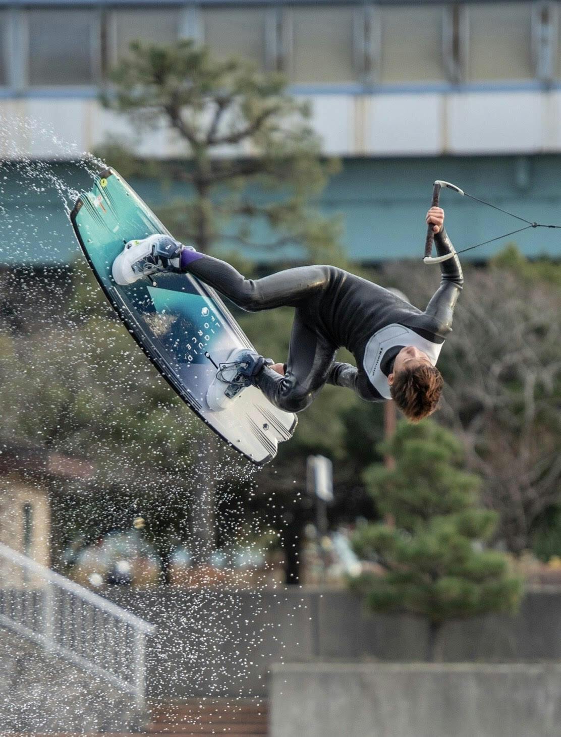 私たちは【リキッドフォース】というウェイクボードブランドの日本チームライダーとして、プロ選手として大会出場や、ボートで引っ張って水上を滑るというウェイクボードの普及活動を各地域で日々やっております。