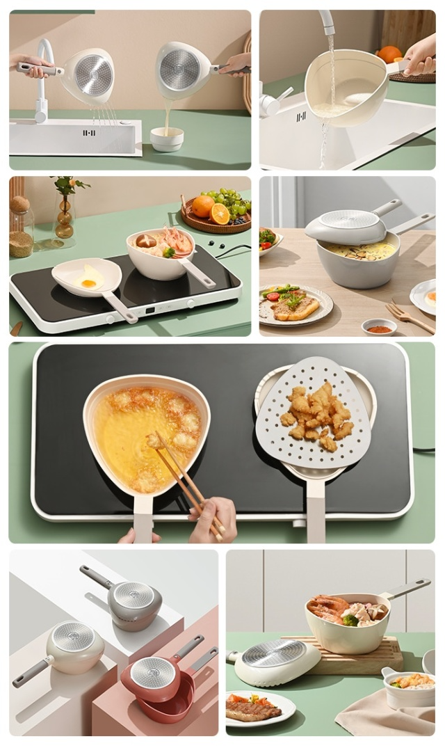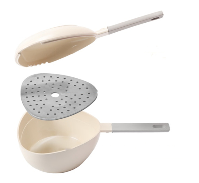 単品で使えば同時調理ができて、ご飯の準備が短縮できるほか、鍋とフライパンを重ねればそれぞれが「蓋」として使える新発想の調理器具です。