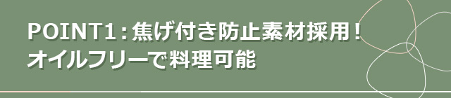 素材には独自の2層の焦げ付き防止セラミック釉薬技術を採用しました。食材が焦げ付きにくいのでオイルフリーで調理が可能。