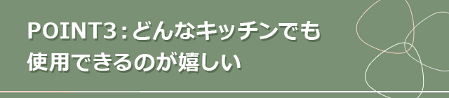 『Taste Plus』はガス・IH・電気・セラミックなど、いろんなコンロにも対応しているから、ほとんどのご家庭で使用できるんですよ。