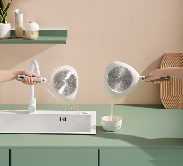突起部分がないので細かい部分の洗い残しに気を使う必要がありませんし、卵焼きフライパンのように隅に汚れが溜まることもありません。