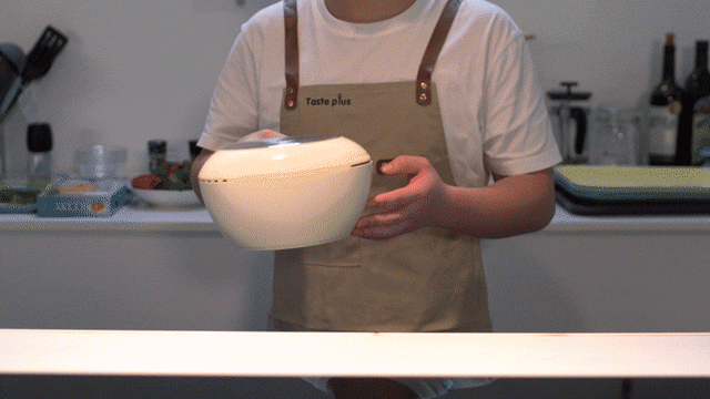 重ねて使うと蓋としても活躍するのは先ほどもお伝えしましたが、デザインをおにぎり型にすることで力の作用点が中心に集中するように設計されており、水切りがとっても簡単にできるようになったのも大きな特徴なんです!