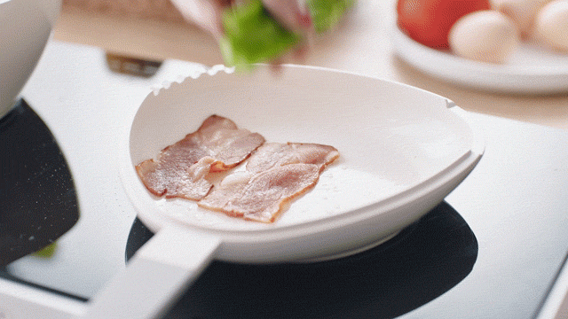 蓋としてだけでなく、例えばお好み焼きやパンケーキなどひっくりかえすと形が崩れやすいものは、重ねて180度回転させるだけで形を崩さずに完成させることも可能なんです。