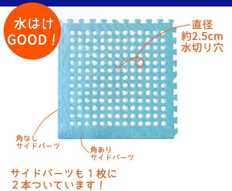 夏場に大活躍するビニールプールを、コンクリートの上で遊ぶ事を考えて作りました。このマットを敷く事で、次の様なメリットがあります。★直接地面に接しないので、擦れて傷が付くのを防ぐ!★プールの底がゴツゴツしない。プールの周りで遊べる!★ジョイント式なので、自由に形を変形出来る。片付けも簡単!
