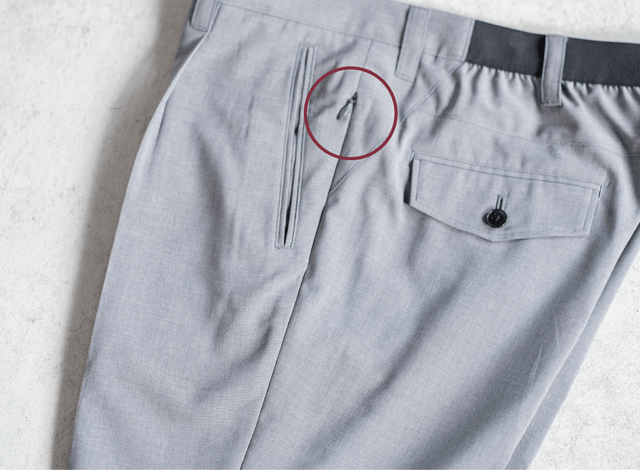 ●サイドファスナーを開ければ、ビジネススラックスからジョガーパンツへ