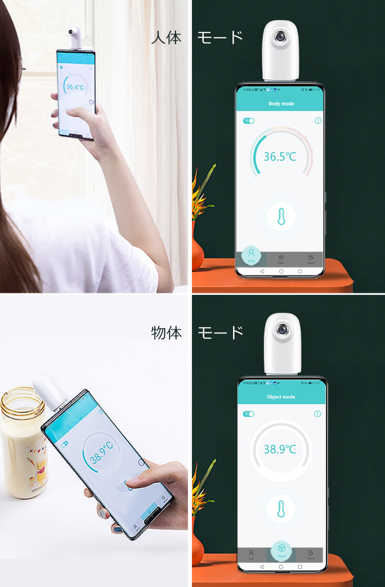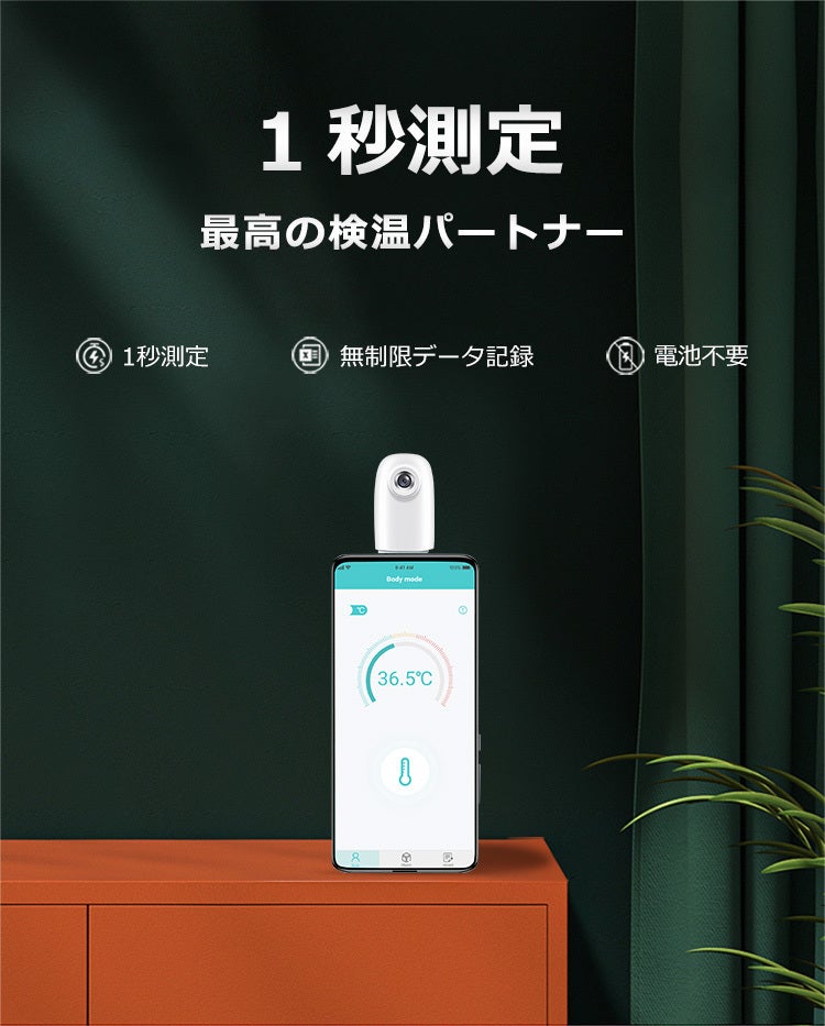 人体モードと物体モードの切り替え機能によって身体の温度から外気温までありとあらゆるものを測ることが出来、さらに測定した人体の温度は自動かつ無制限に専用アプリに保存されます!
