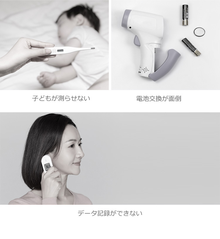 嫌がって大泣きしてしまう赤ちゃんでも、非接触でサッと検温できるのでとても便利です。
