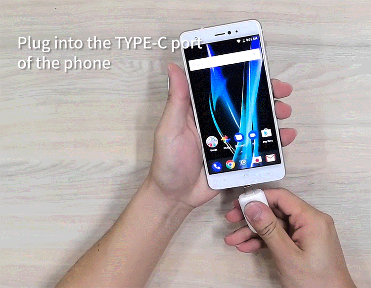 複雑な準備作業はありません。本体の保護カバーを外して、Type-C端子に対応しているスマートフォンに挿し込むだけ。自動で専用アプリが起動します。