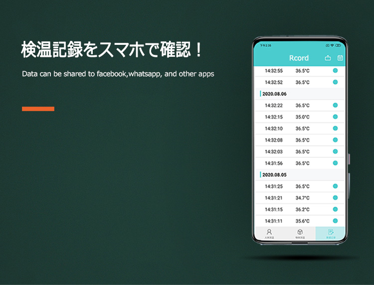 人体の検温データは、無料の専用アプリに自動保存されます。