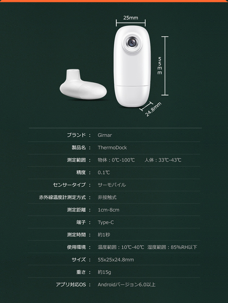 Type-Cポートに挿し込み瞬間検温!