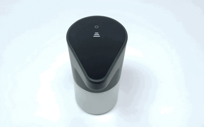 上部を2秒間タッチすると電源のON/OFF切替が可能です。電源ONの状態で上部を2回タップするとナイトモードに切替が出来、ナイトモードでは、ノズルに手や物を近づけるとライトアップする事が出来ます。また、液体の量(時間)を6段階で調整する事が出来、3回タップする度に液体の量(時間)を増やす事が出来ます(液体量の段階は上部の色で確認可能)
