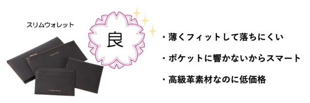 「高級で薄い財布なのにあまり高価ではないこと」