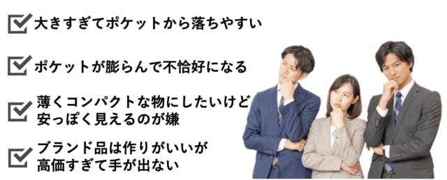 と尋ねたところ、- 答えは一様に、「高級感のある薄い革財布なのに、あまり高価でないこと」でした。