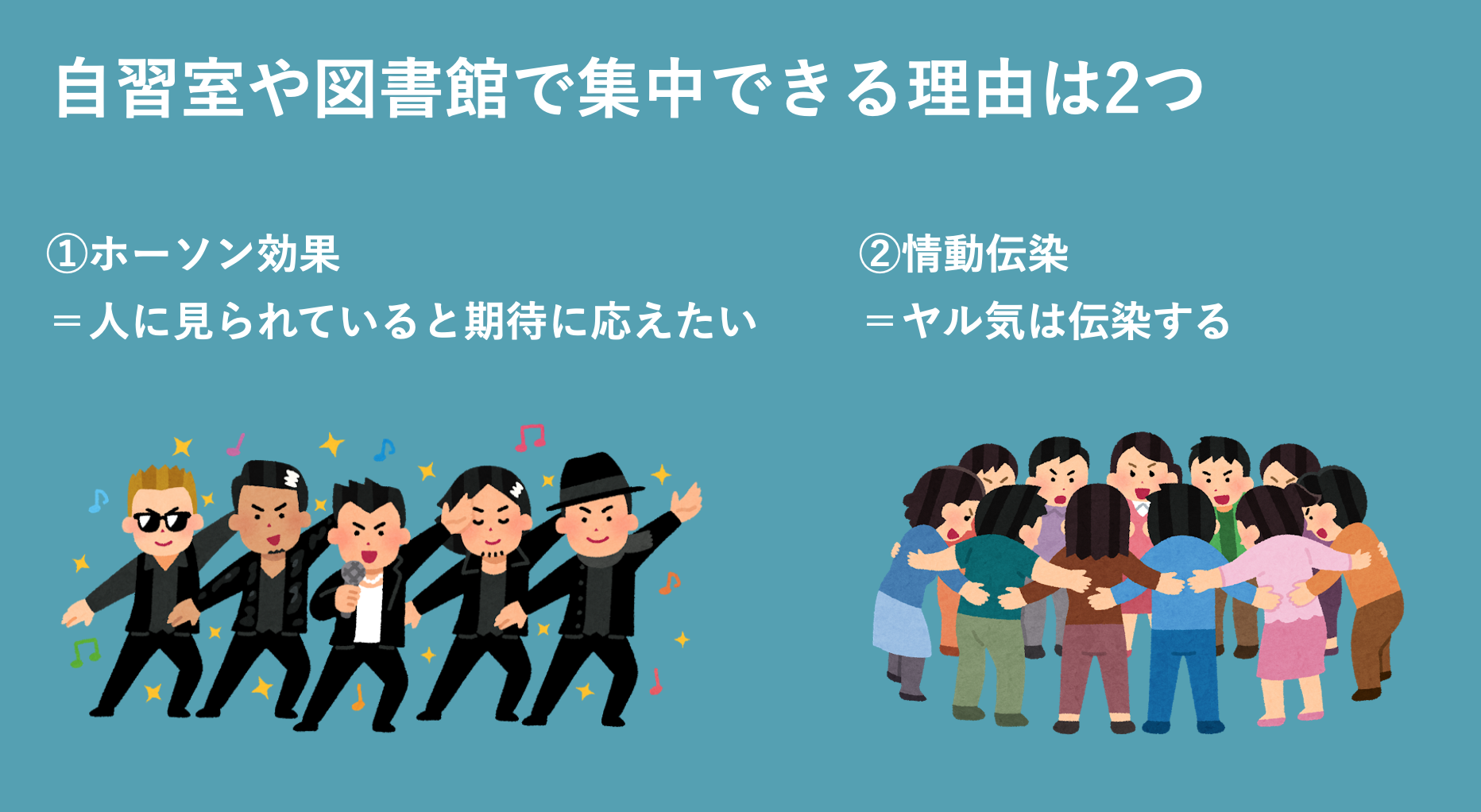 自習室や図書館などで、周りに勉強している人がいると自分も集中できた経験はありませんか?